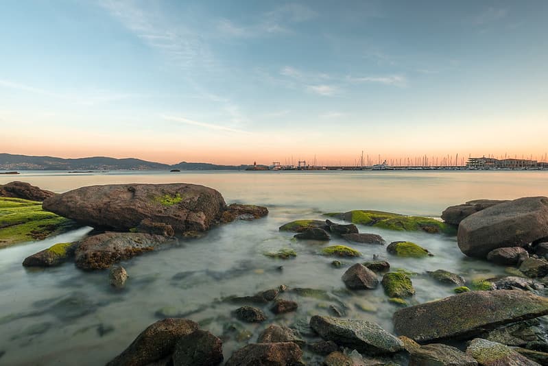 Hoy las pleamares en Carabuxeira son a las 00:10 y 12:35 (2.2m). Coeficiente 102, mareas vivas.